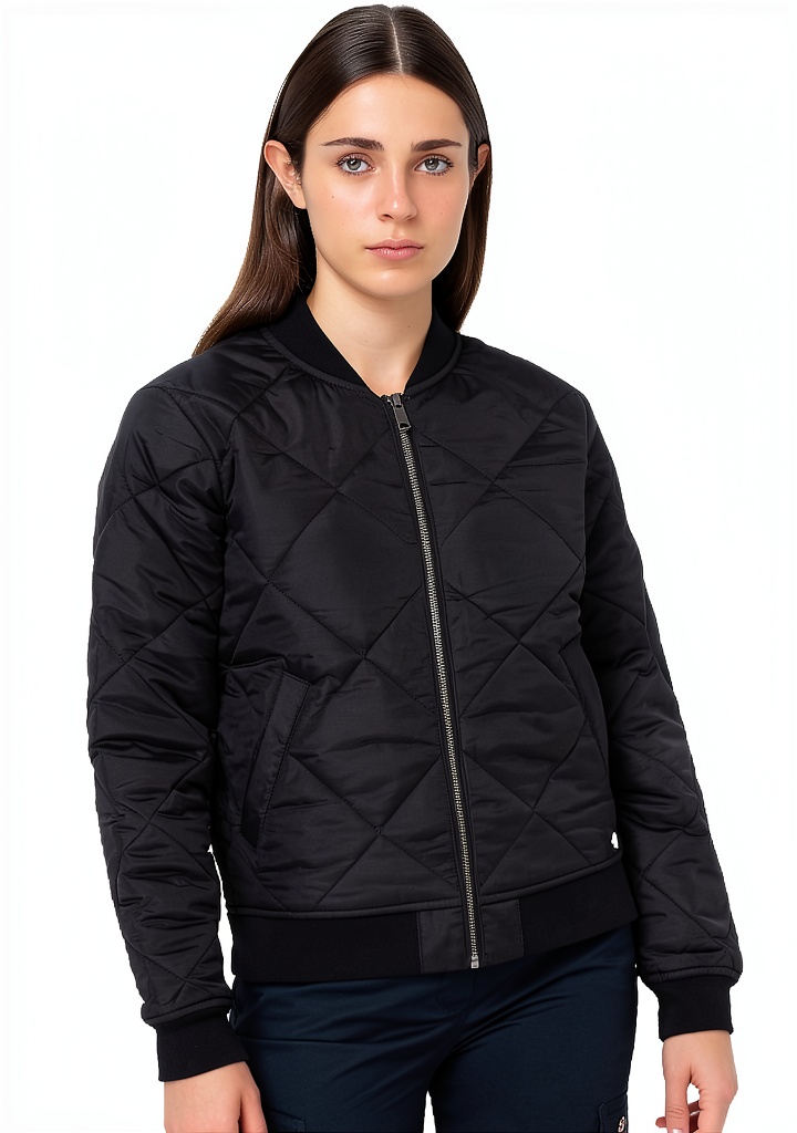 La giacca bomber Dickies per donna è realizzata in tessuto trapuntato a diamante, idrorepellente e resistente alle intemperie, che garantisce calore e protezione dall’umidità. Dotata di chiusura frontale con zip, tasche riscaldate e polsini e vita in maglia per una vestibilità comoda. Modello FJ800, disponibile in taglie S, M, L, XL, 2X e colori Nero e Blu navy scuro, con prezzo da 60,22€ a 86,60€. Costruita per durare, unisce funzionalità e design urbano.